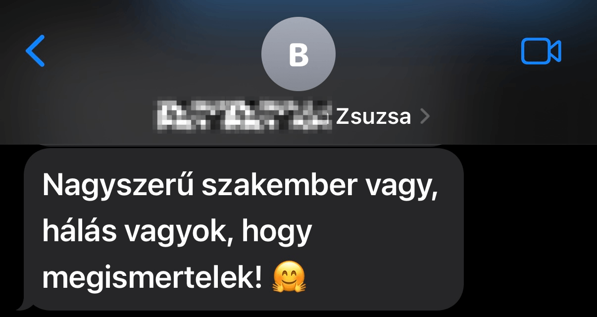 „Közel 20 évig jártam hagyományos terápiára, és magam is klinikai szakpszichológus szakképesítéssel rendelkezem. Mindezek ellenére még sosem mentem ilyen mértékű és mélységű fejlődésen keresztül, mint amióta Ágival dolgozom. Korábban bármennyi ideig tudtam beszélni a problémáimról, jól ismertem már önmagamat, de arra nem voltam képes, hogy cselekedjek, változtassak, vagy ha igen, akkor sem volt tartós a változás.